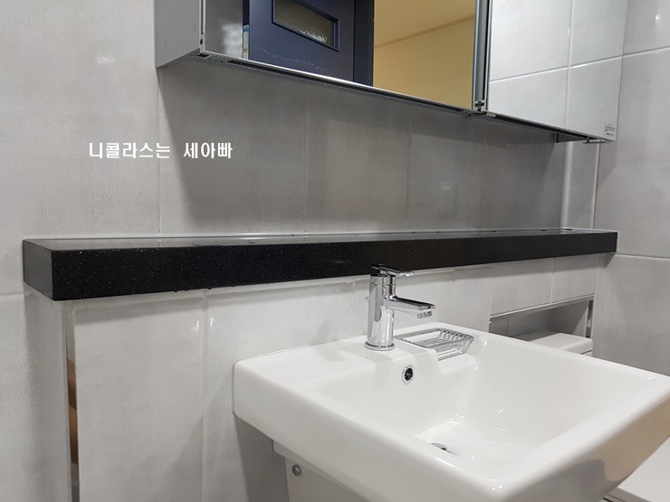 3. 인조대리석 상판으로 포인트도 주고 욕실용품을 올려 놓을 수 있습니다.