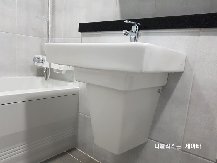 냉온수 배관 폭이 넓으면 반다리형 세면기를 설치 할 수 없지만