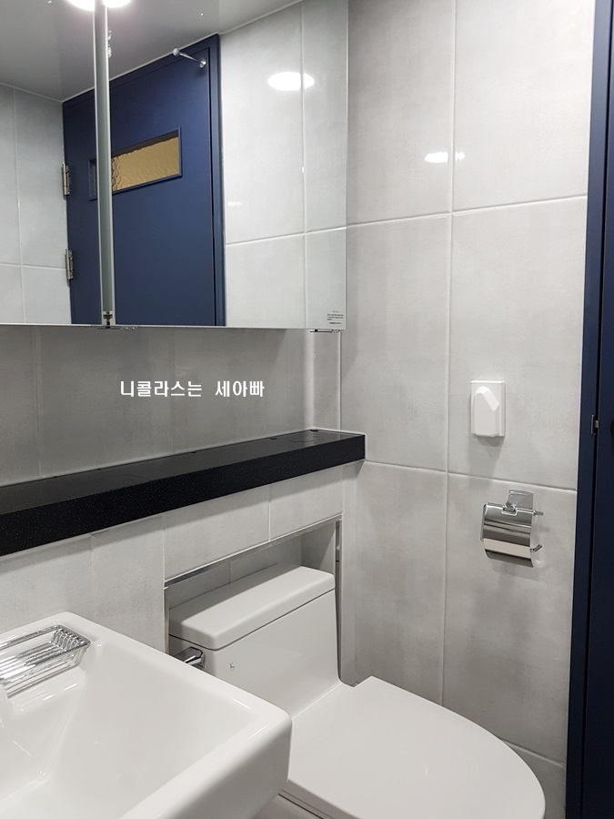 그리고 색상은 화장실 타일이 화이트 톤이라 화장실문은 블루 계열로 포인트를 줬습니다.