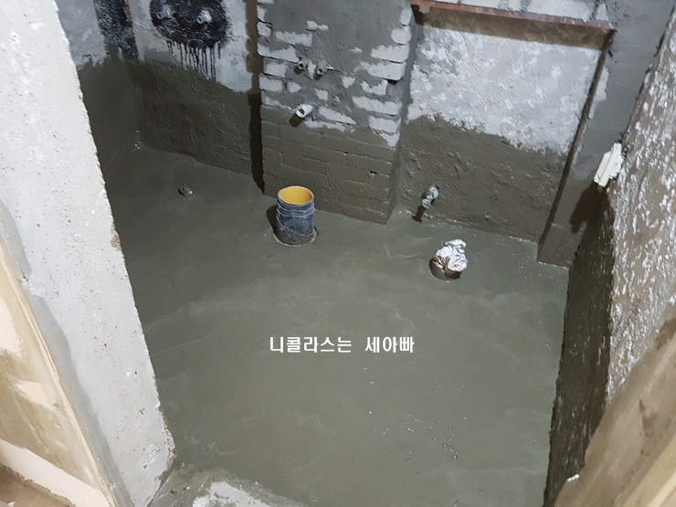 3. 방수공사 : 2회에 걸쳐 몰탈방수를 하고 3차로 고뫄스 방수를 합니다