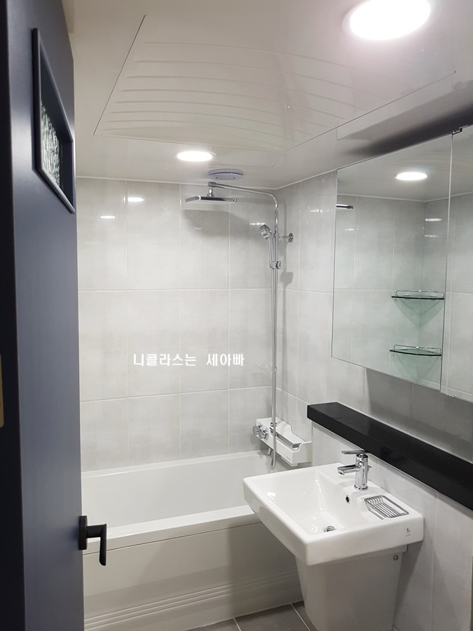 리고 기존에 벽면에 있던 조명도 전기공사를 해서 LED 등을 천정에 매립시켰습니다.
