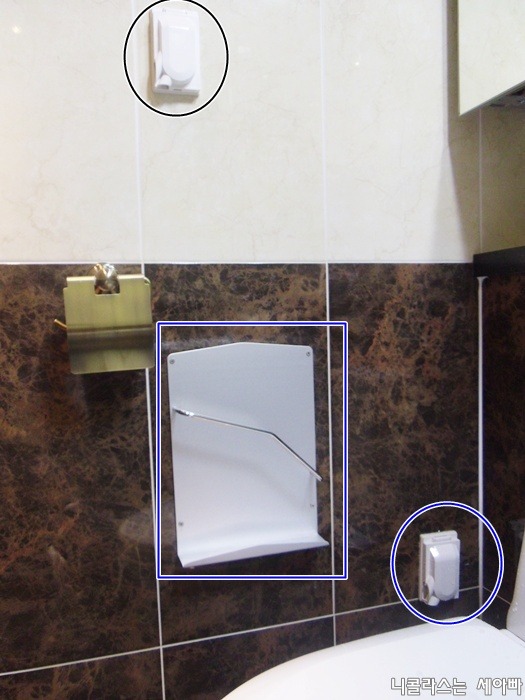 이렇게 콘센트를 한개 더 만들어 아래쪽에 있는 것은 비데 전용으로 쓰고,