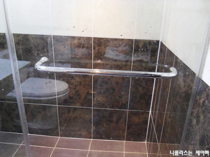 이 현장은 수건걸이를 일부 절단해서(절단 된 흔적이 않나게 하면서.....) 시공했습니다.
