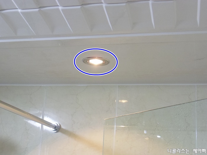 화장실 메인조명 이외에 이렇게 천정에 간접 매립등을 설치하면 화장실 분위기가 한층더 업그레이드 됩니다.