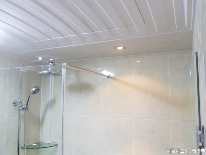 샴푸나 기타 물건을 올려놓을 수 있도록 코너선반도 2개 정도 설치하구요.