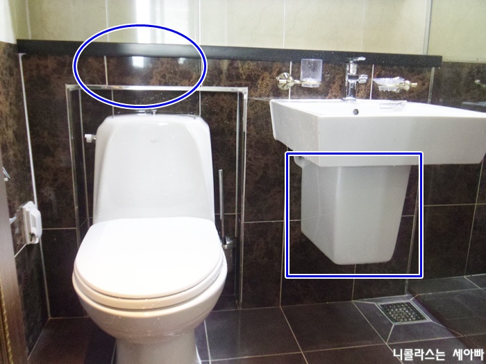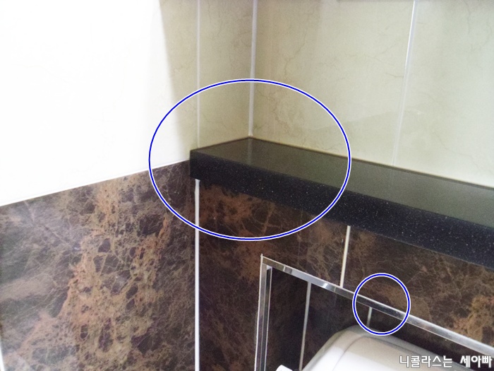 그리고 양변기 위쪽에 젠다이 상판이 놓이는 곳에 조적을 안하는 모델하우스 욕실도 보았는데요.