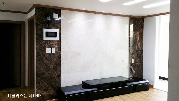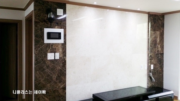 이 현장은 거실 아트월로 복합대리석을 시공해 포인트를 주기로 했습니다.