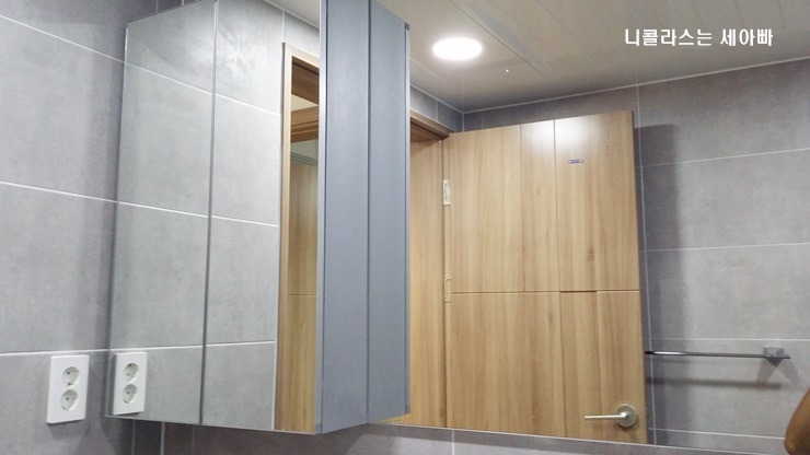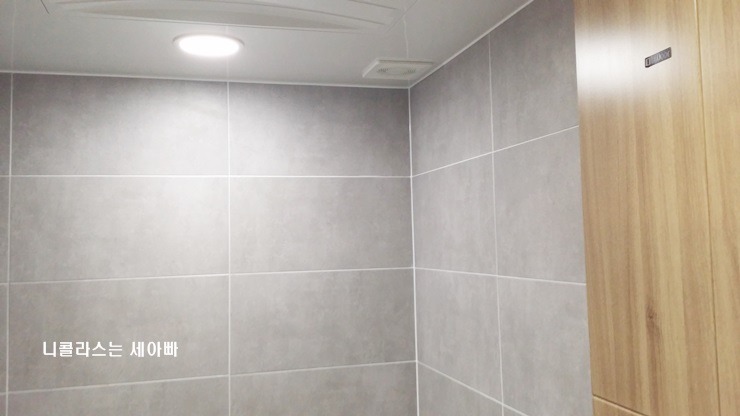 기존에 벽면에 있던 욕실등도 천청에 LED 매립형으로 시공하고요.