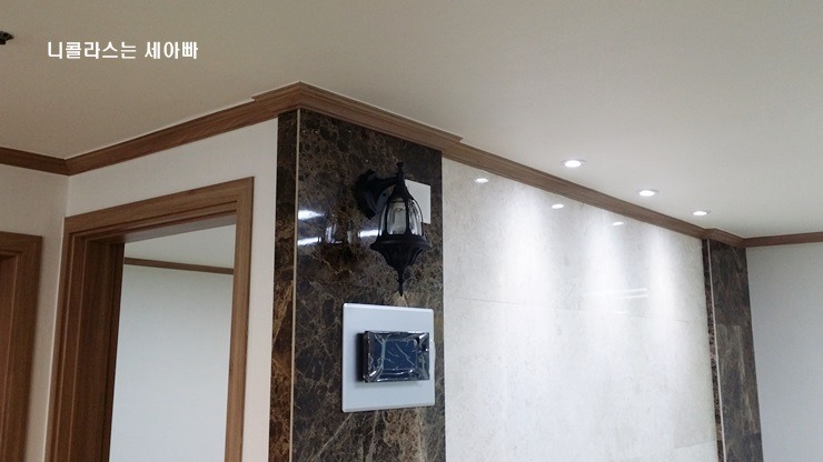 돌출된 확장된 벽면에는 평 몰딩으로 깔끔하게 마무리했습니다.