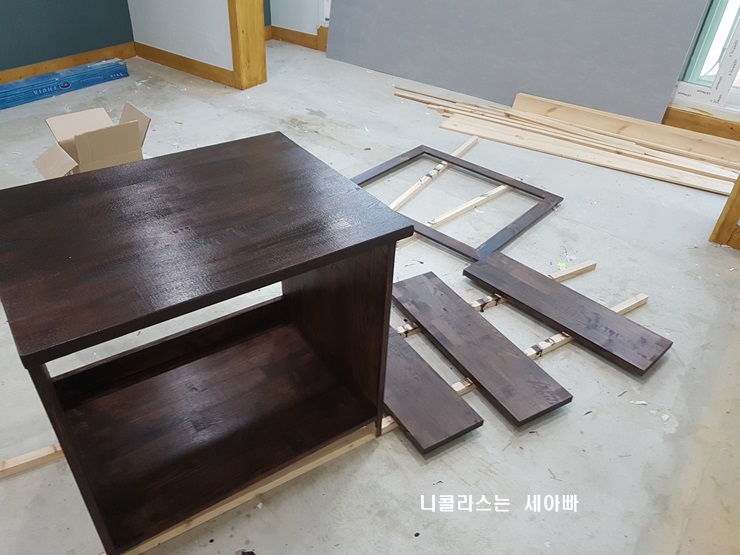 그리고 욕실에 사용될 제품이라 방수를 위해 오일 스탠을 3번 이상 꼼꼼히 칠해줬습니다.
