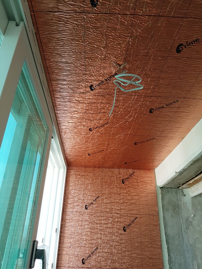 확장공사를 하면서 가장 중요한 것이 바로 단열공사인데요. 단열의 핵심을 빈틈없이 얼마나 꼼꼼히 마감하느냐가 중요한데요. 우선 두께가 조금 두꺼운 12T 슈퍼 온도리로 벽면에 취부 했습니다.