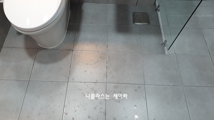이렇게 타일 색과 비슷한 회색 줄눈을 넣으면 그런 걱정은 좀 덜겠지요...