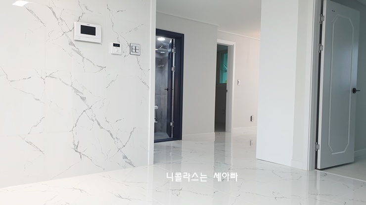 그리고 이왕 하는 공사 비용이 조금 더 들라라도 조금 더 고급지게 바닥도 폴리싱 타일로 시공하고,