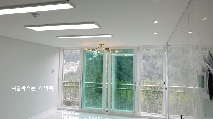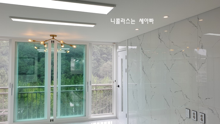 공사 끝나고 집주인 분하고 저 의자에 같이 앉아서 밖을 보면서 이런저런 얘기를 나눴는데요. 한강뷰 부럽지 않은 숲속뷰가 너무 좋았습니다.