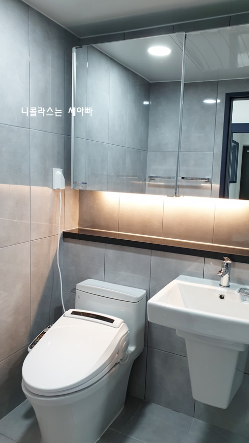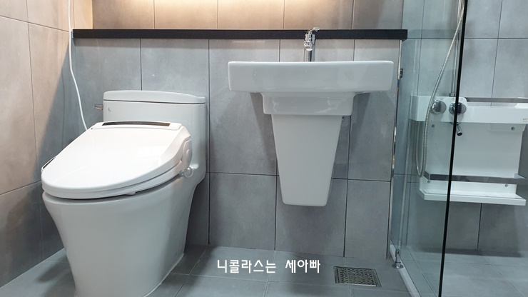 이렇게 원피스형 양변기를 설치하면 청소하기도 수월하고 양변기 디자인이 꽤 고급져 보입니다.