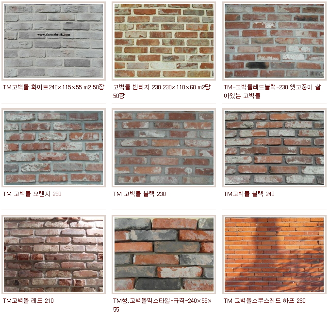 청고 벽돌, 고벽돌은 건물 외부 시공 시 사용되며 건물 내부 인테리어를 할 때는 고벽돌을 1/3 크기로 얇게 재단된 타일로 시공하게 되는데요.