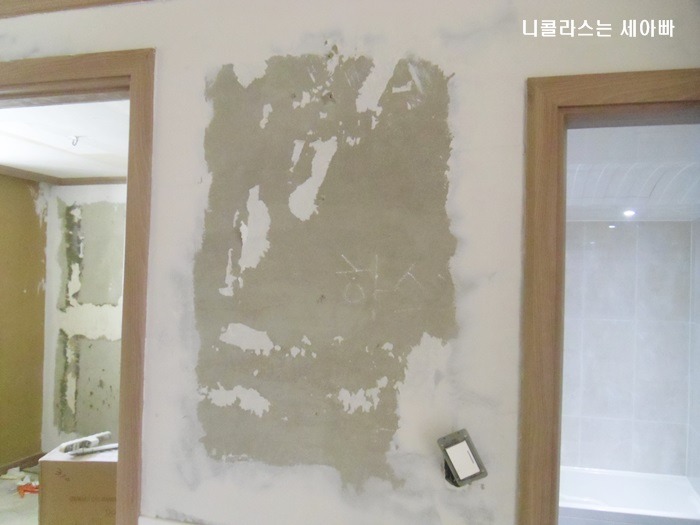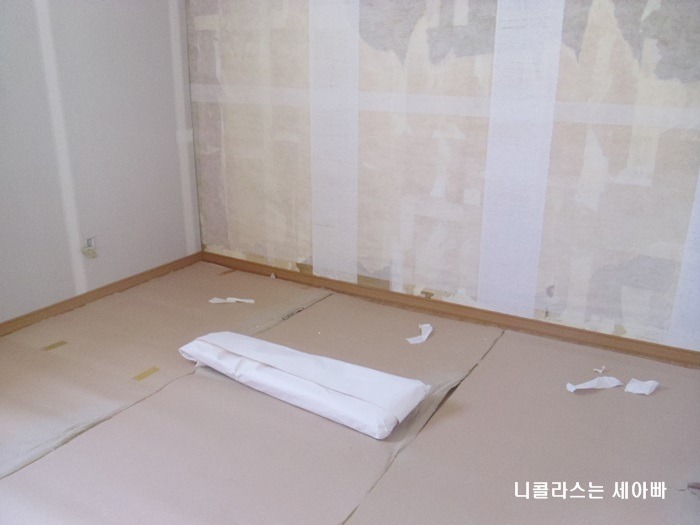 뜯어낸 벽면에 초배지를 바른 상태인데요.