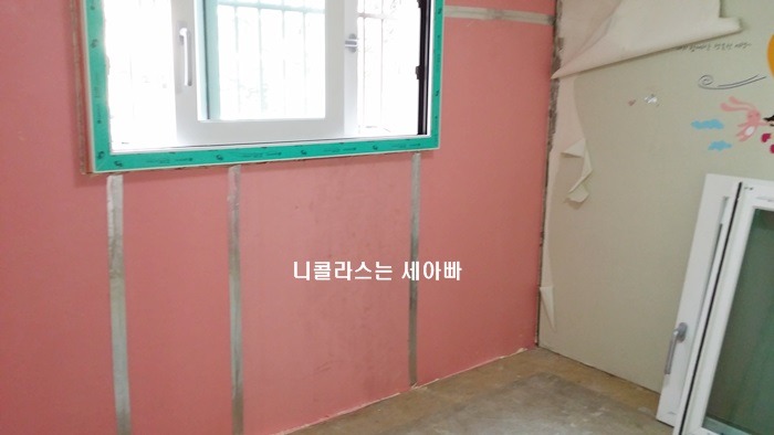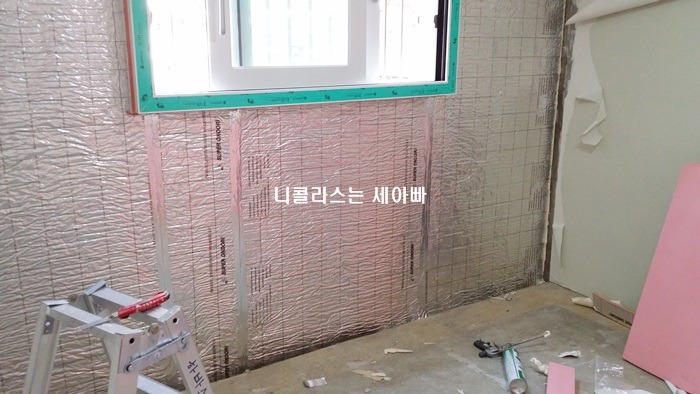 위 사진은 확장된 벽면에 단열공사를 하기 전 모습인데요.