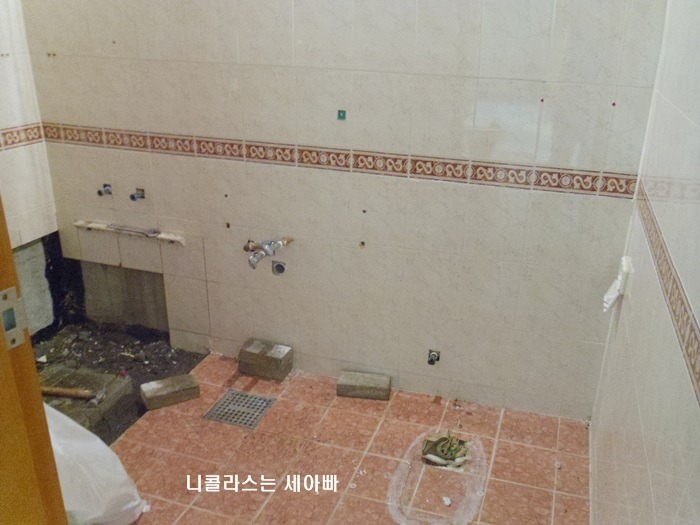 욕실 올 철거한 상태이고요. 욕실용품뿐만 아니라 기존 벽타일 및 바닥 타일도 전부 철거합니다.