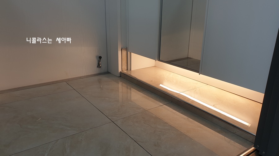 간접조명을 설치하면 좋은 곳으로는 거실 커튼 박스 쪽, 신발장 하단부, 욕실 슬라이딩장 하단부, 주방 싱크대 상부장 하단부 등이 아주 좋습니다. 이건 강추입니다.