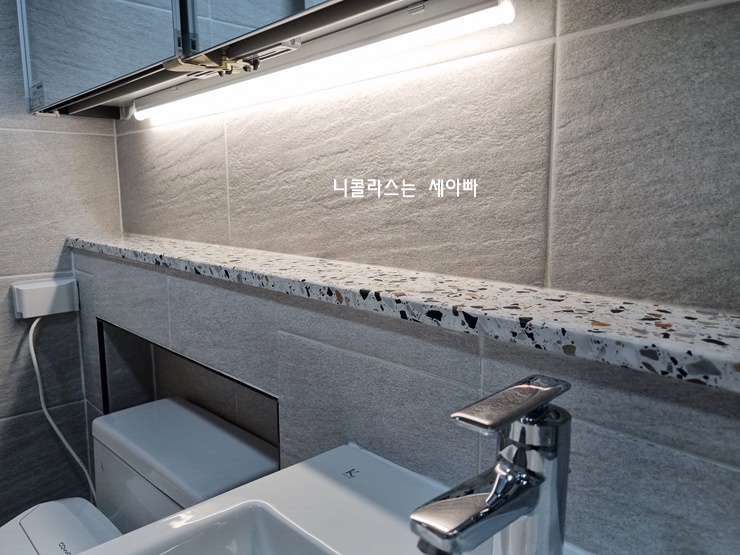 안방 욕실은 상태가 양호해 덧방 시공으로 진행했습니다.