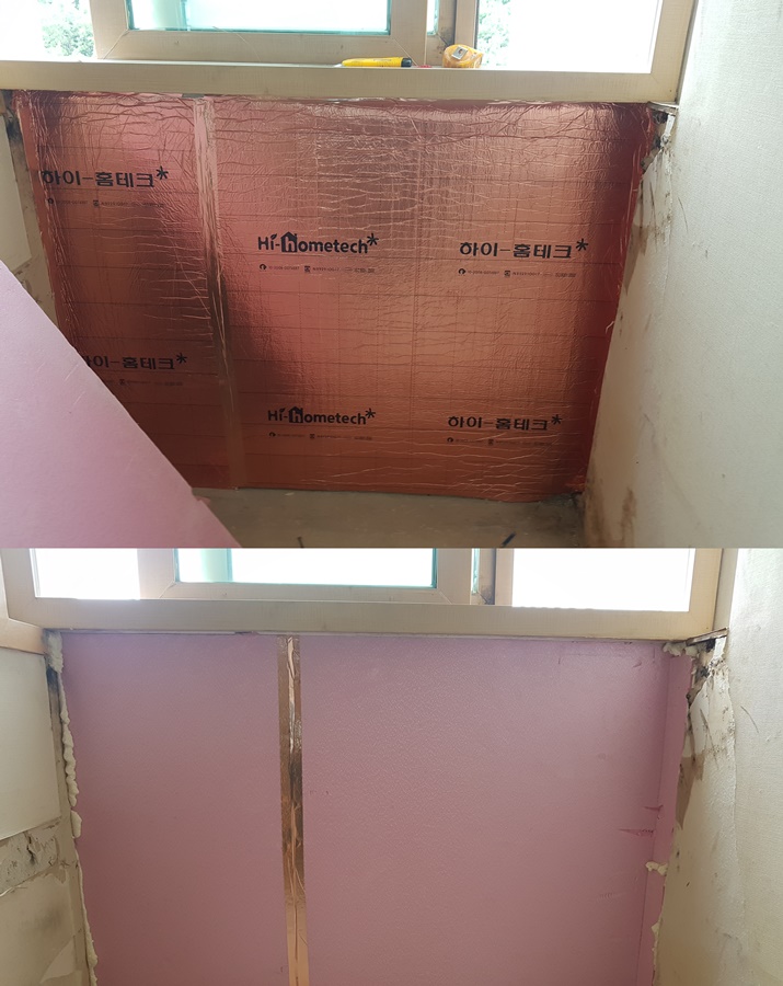 열반사 단열지 + 아이소핑크 50T 조합으로 새롭게 시공했습니다.