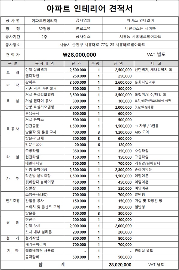 🧾 32평 아파트 리모델링 견적서 비용