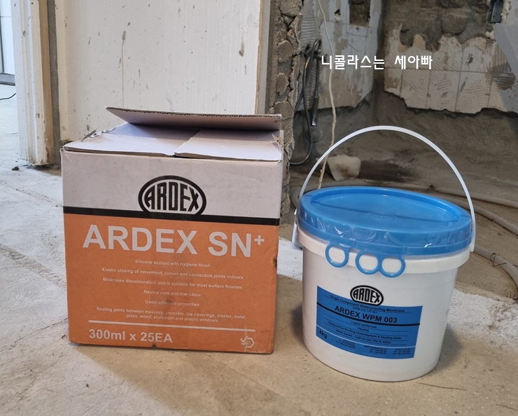 **아덱스 방수제 (ARDEX WPM003)**를 사용해