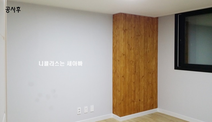확장된 작은방엔 원목 패널 + 오일 스테인 도장으로