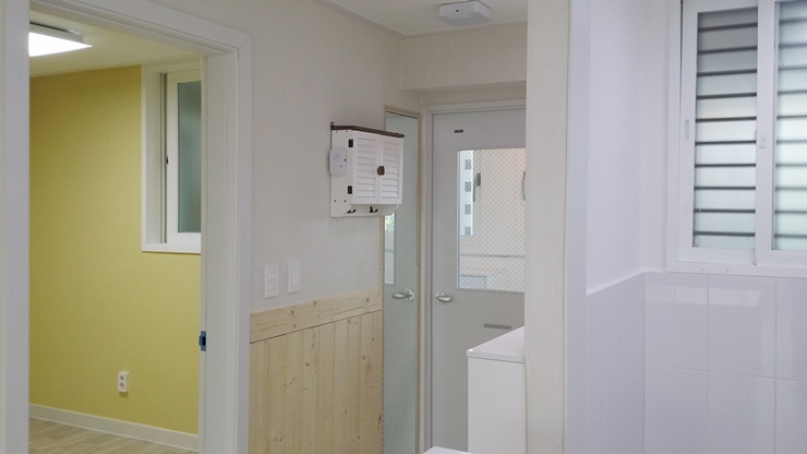 세탁실과의 경계가 명확하고, 가벽과 상부장이 답답한 구조였습니다.