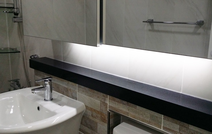 - 상부장 하단에는 간접조명을 설치해 조도와 분위기를 개선했습니다.